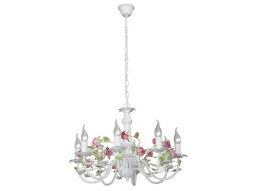 Люстра V1276/8 притягивает взгляд и восхищает. Изящная конструкция украшена великолепными розочками и зелеными листочками. Модель создаст неповторимую атмосферу романтичного прованса в помещении.<br>