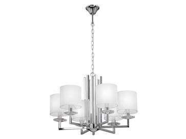 Люстра V3917/6 — элегантная модель, выполненная в стиле современной классики. Основание в цвете хром украшено стеклянным декором. Текстильные абажуры цилиндрической формы мягко рассеивают свет.<br>