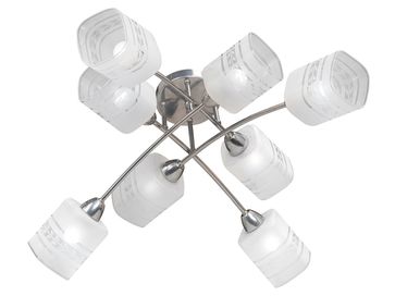 Люстра V4187-9/8PL — отличный вариант для помещений с невысокими потолками. Основание цвета хрома искусно обрамляют плафоны оригинальной формы из матового стекла.<br>