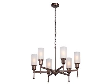 Люстра V4791-7/6 — сочетание элегантности и изысканности. Модель благородного цвета коньячной бронзы стильно сочетается с плафонами из белого матового стекла в виде цилиндров.<br>