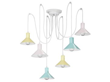 Люстра-паук V4794-0/6S органично впишется в детскую или подростковую комнату. Изюминкой люстры являются подвесные металлические плафоны, окрашенные в разные цвета.<br>