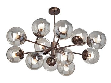 Люстра V4875-7/12PL обладает высокими параметрами освещенности. Основание оттенка коньячной бронзы органично дополняют стеклянные плафоны в виде шаров, которые обеспечивают мягкое и рассеянное освещение.<br>