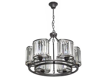 Люстра V5235-1/6 покорит неповторимым дизайном. Металлическая конструкция черного цвета органично сочетается с хрустальным декором, который игриво переливается на свету.<br>