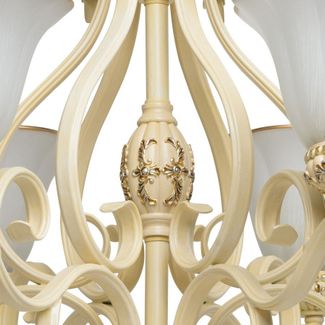 Артикул: 254014006Бренд: ChiaroСтиль: КантриКоллекция: ВерсачеВысота, мм: 2250Диаметр, мм: 780Длина подвеса, мм: 1700Кол-во ламп / Мощность / Цоколь: 6*60W E27Тип ламп: лампы накаливания, энергосберегающие (люминесцентные, светодиодные)Площадь освещения, м2: 18Вес, кг: 14,1Материалы: Кованое металлическое основание молочного цвета, плафоны из стекла с перламутровым отблеском и декоративной крашеной каёмкойПодвесной светильник из коллекции Версаче выполнен в соответствии с поздним периодом средневекового стиля. Легкое тонирование стекла придаёт рельефным плафонам волшебное перламутровое сияние, кованая арматура светильника изысканно декорирована при помощи тонких листов сусального металла. Эти яркие элементы основания гармонично перекликаются с бликами хрустальных подвесок, отлично дополняющих образ главеного акцента в интерьере! Минимальная сумма заказа 2000 рублей Страна производства: Германия
