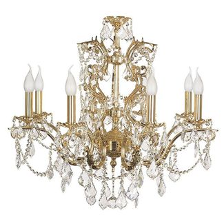 Подвесная люстра Dio D’Arte Forli E 1.1.8.200 G придаст вашему интерьеру очарование итальянской роскоши. В осветительном приборе применяются лампы мощностью 40W, с цоколем Е14, в количестве 8 шт. Подойдут как обычные лампы накаливания, так и светодиодные. При выборе светильника обратите внимание на его габаритные размеры: высота - 600 мм, диаметр - 750 мм. Основание цвета золото выполнено из металла, в декоре используются хрустальные повески высочайшего качества (Asfour). По вашему желанию, модель светильника возможна в исполнении с хрусталем Swarovski. Покупая осветительный прибор D’Arte Forli E 1.1.8.200 G в магазине Линия Света, вы получаете гарантию 12 месяцев с даты продажи. Минимальная сумма заказа 2000 рублей Страна производства: Италия