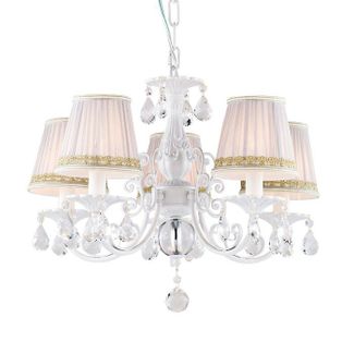 Люстра 1729-5P производства немецкой фабрики Favourite относится к коллекции Alla. Габаритные размеры светильника в мм: D560*H400/1400. В конструкции осветительного прибора используются лампы мощностью 40W, их количество - 5. Для производства светильника Alla 1729-5P были применены следующие материалы: каркас белого матового цвета, абажур из белой хлопковой ткани с узорной золотистой тесьмой, хрустальные подвески высшего качества. Гарантия производителя составляет 12 месяцев с даты продажи. Минимальная сумма заказа 2000 рублей Страна производства: Германия