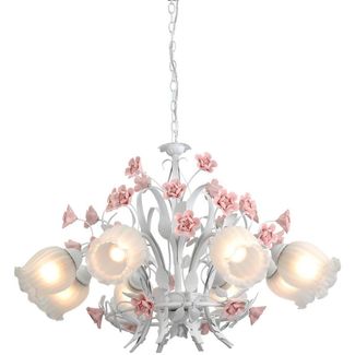 Подвесная люстра Lucia Tucci производства Италия из коллекции Fiori Di Rose. В конструкции люстры Fiori Di Rose 106.8 используются 8 белых стеклянных плафонов в форме цветов и металлическая арматура цвета белый. Габариты светильника 500x700 мм. Дизайн люстры отлично подходит для гостиной. Устанавливается на потолок. Минимальная сумма заказа 2000 рублей Страна производства: Италия