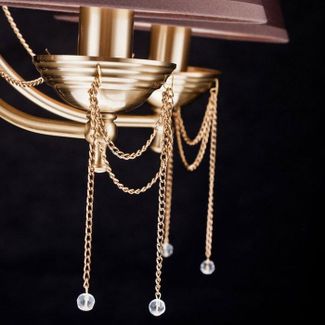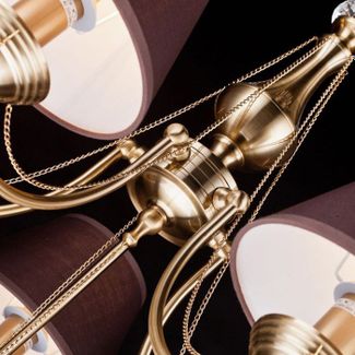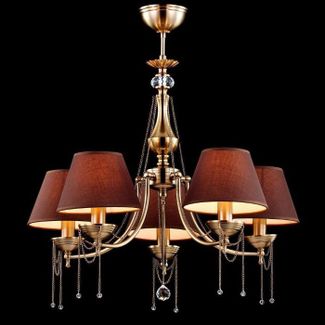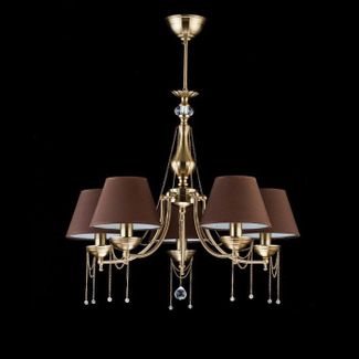 Подвесная люстра Maytoni производства Германия из коллекции Classic 4. В конструкции люстры CL0100-05-R используются 5 коричневых тканевых плафонов конусной формы и металлическая арматура цвета золото. Габаритные размеры люстры 570x600 мм. Дизайн люстры отлично подходит для спальни. Устанавливается на потолок. Минимальная сумма заказа 2000 рублей Страна производства: Германия