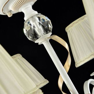 Подвесная люстра Maytoni производства Германия из коллекции Elina. В конструкции люстры ARM222-06-G используются 6 белых тканевых плафонов конусной формы и металлическая арматура цвета золото. Габаритные размеры люстры 910x610 мм. Дизайн люстры отлично подходит для спальни. Устанавливается на потолок. Минимальная сумма заказа 2000 рублей Страна производства: Германия