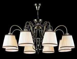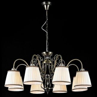 Подвесная люстра Maytoni производства Германия из коллекции Elegant 20. В конструкции люстры ARM420-08-R используются 8 белых тканевых плафонов с абажуром и металлическая арматура цвета бронза. Габаритные размеры люстры 450x810 мм. Дизайн люстры отлично подходит для гостиной. Устанавливается на потолок. Минимальная сумма заказа 2000 рублей Страна производства: Германия