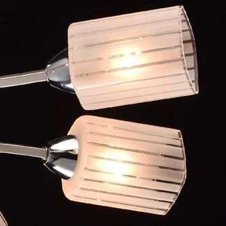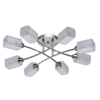Лампы (в комплекте нет): 8*60W E142700K Арматура: сталь гальванизирована в цвет хрома. Плафоны: матовое стекло. Гармония линий и форм, отлично подобранная цветовая гамма - всё это в люстре из коллекции «Олимпия». Хромированное металлическое основание дополнено рожками цвета серебра. Плавные линии подчёркнуты прямоугольными плафонами с округлыми углами. Они выполнены из матового стекла и украшены прозрачным полосатым рисунком. Минимальная сумма заказа 2000 рублей Страна производства: Германия