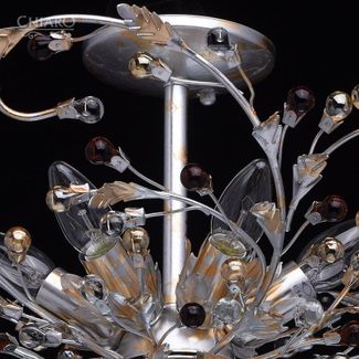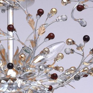 Артикул: 298012006Бренд: ChiaroСтиль: ФлораКоллекция: ВиолаВысота, мм: 260Диаметр, мм: 600Кол-во ламп / Мощность / Цоколь: 6*40W E14Тип ламп: лампы накаливания, энергосберегающие (люминесцентные, светодиодные)Площадь освещения, м2: 12Вес, кг: 4,9Материалы: Металлическое основания цвета серебра с фрагментарным нанесением сусального золота, декоративные элементы из цветного стеклаПраздничное великолепие привнесет в обстановку роскошная люстра из коллекции «Виола». Основание выполнено из металла с серебряным покрытием и золотым патинированием, что создает эффект гламура и старины. Люстра оформлена в необычном, флористическом стиле. Благодаря замысловатому переплетению изящных растительных элементов и украшениям в виде капель из стекла, светильник выглядит по-настоящему фантастично, а при вечернем освещении сказочно сияет. Декоративные капли цвета «шампань» и «карамель» идеально сочетаются с цветовой гаммой основания. Неповторимый дизайн и ручная работа прослеживаются в каждой детали и превращают светильник в подлинный шедевр любого интерьера. Рекомендуемая площадь освещения порядка 18 кв.м. Минимальная сумма заказа 2000 рублей