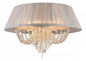 Люстры серии Coperto элегантны, как большинство декоративных вещей эпохи модерн и арт-деко. Металлическая хромированная конструкция украшена серебристым полупрозрачным абажуром из органзы. Изысканность и элегантность коллекции подчеркивают сверкающие гирлянды хрустальных нитей и хрустальных подвесок Минимальная сумма заказа 2000 рублей Страна производства: Италия