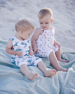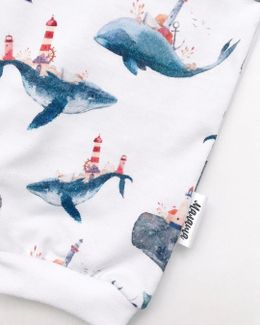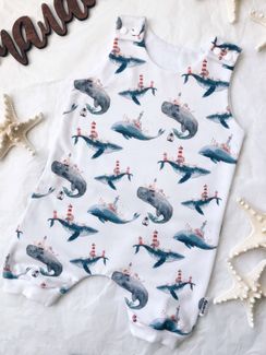 <p>Детский песочник из мягкого хлопкового трикотажа на кнопках с рисунком голубые киты</p> None Возможен самовывоз. Есть доставка.