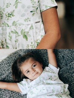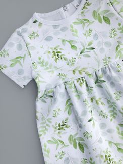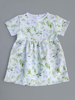 <p>Платье с коротким рукавом из мягкого хлопкового трикотажа футера с принтом &quot;Эвкалипт&quot;. Футер качества пенье, в составе 95% хлопок 5% эластан. На горловине застежка на кнопке.</p> None Возможен самовывоз. Есть доставка.