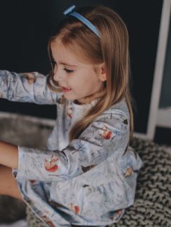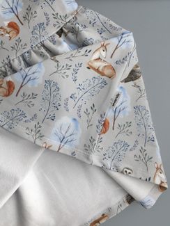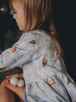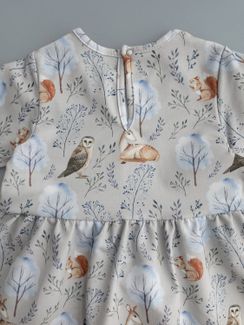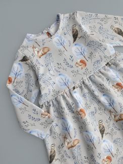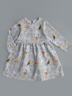 <p>Платье с длинным рукавом из мягкого хлопкового трикотажа футер качества пенье с принтом &quot;Зимний лес&quot; - белочки, олени, совы. На горловине застежка-кнопка.</p> None Возможен самовывоз. Есть доставка.
