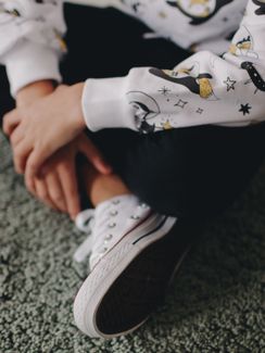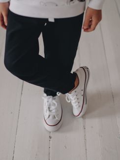 <p>Штаны из мягкого хлопкового трикотажа. Выполнены из трикотажа футер двунитка качества пенье. В составе 95% хлопка 5% эластана. Пояс на резинке со шнурком для удобного регулирования объема талии. Штаны имеют глубокую посадку, благодаря чему даже при самых активных играх спинка ребенка всегда останется прикрытой. Красивый черный цвет штанишек отлично сочетается со свитшотами &quot;Космические звери&quot;.</p> None Возможен самовывоз. Есть доставка.