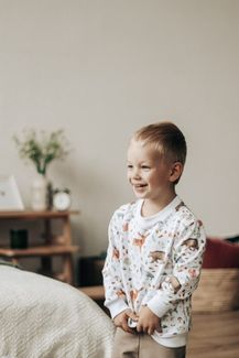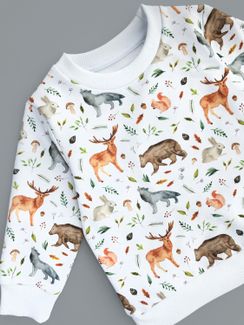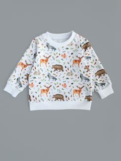 <p>Свитшот с длинным рукавом из мягкого хлопкового трикотажа футера с принтом &quot;Зверята&quot; - олени, волки, медведи, зайцы, белки и грибы. Футер качества пенье, в составе 95% хлопок 5% эластан. По горловине, низу рукава и низу свитшота отделка мягкой хлопковой резинкой. </p> None Возможен самовывоз. Есть доставка.