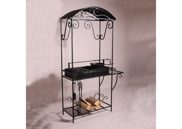 Мангал с крышей "Семейный" кованый для дачи. Оборудован навесом, вертелом и небольшой полочкой с правой стороны топки для удобства приготовления пищи. Под топкой размещена вместительная дровница. None