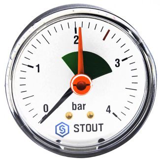 - Манометр Stout аксиальный с указателем предела, корпус ? 50 мм, диапазон 0...4 бар по выгодной цене 393 р. руб.;