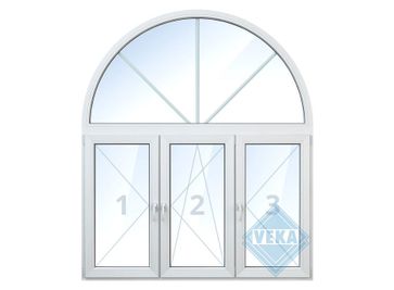 Тройное окно с аркой представляет собой трехстворчатое окно с красивой полукруглой аркой вверху — такое окно визуально смягчает контуры и осветляет помещение, конечно должен быть соответствующий проем в стене квартиры, дома, виллы или другого здания. Внимание: цена может отличаться, т.к. формируется из типа профиля + разных стеклопакетов + ламината + фурнитуры + отливов и подоконников! Вы приобретаете окна не на год, два или 5, вы приобретаете как минимум лет на 20-30-50.. с нашим профилем VEKA — вы получаете максимальный срок службы окон — 50 лет (качественные фурнитура и профили и стеклопакеты), учтите, такое возможно при комплексном подходе — качественное изготовление по немецким стандартам, правильной установке опытными сертифицированными специалистами, регулярном обслуживании окон (вы можете делать это самостоятельно с помощью набора для ухода за ПВХ окнами). Закажите расчет и замер окон и дверей на нашем сайте. None Возможен самовывоз. Есть доставка.