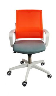 Кресло офисное Бит LB белый пластик оранжевая сетка темно серая ткань