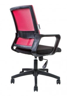 не монолитный пластиковый каркас спинка крепится к сидушке надежным крепежём (8 болтов) сиденье из ткани (черного цвета) повышенной износостойкости, в основании поролон плотностью 40 кг/м.куб широкое сиденье спинка из акриловой сетки повышенной износостойкости встроенный поясничный упор механизм качания с возможностью фиксации кресла в рабочем положении, с регулировкой усилия на качание роликовые колеса с прорезиненными вставками (для сохранения напольных покрытий) максимальная нагрузка 90 кг. цвет: спинка-красный/сидушка-черный особенности: укороченная спинка None