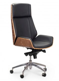 Кресло офисное Патио черная кожа алюминиевая крестовина
