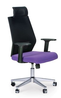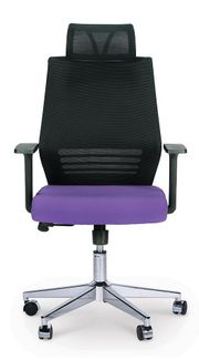 не регулируемые Т-образные подлокотники белого цвета регулируемый по высоте подголовник помогает снять усталость шеи высокое качество исполнения разнообразные цветовые компоновки спинки (сетка) и сиденья (ткань) максимальная нагрузка 120 кг. механизм качания топган с фиксацией в рабочем положении регулировка высоты сидения системой газлифт регулировка жесткости качания регулировка напряжения с контролем веса цвет каркаса - черный цвет: спинка-черный/сиденье-фиолетовый None