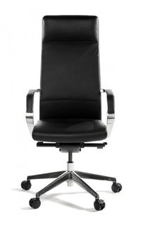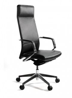 Кресло офисное Сиена/черная кожа/алюминий крестовина Кресло руководителя First class: