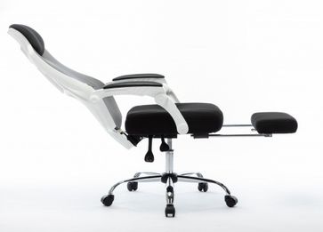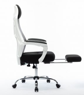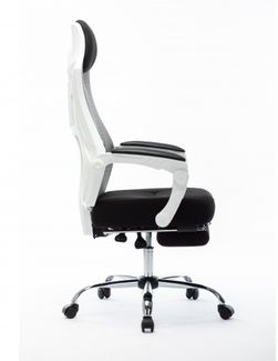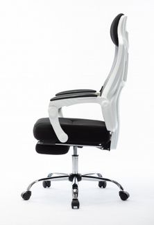 Кресло офисное/007 NEW/белый пластик/черная ткань/черная сетка Ультрасовременное усовершенствованное компьютерное кресло «007 new» практически не имеет аналогов на нашем рынке. В нем сочетаются новейшие веяния европейского дизайна, харизматичный, стильный внешний вид и повышенный комфорт. Кресло «007 new» имеет выдвижную опору для ног, которая позволяет принять максимально комфортное положение, недоступное в большинстве других моделей. Выдвижная подножка для поддержки ног позволяет принять лежачее положение в минуты отдыха, снимает нагрузку с позвоночника, улучшает кровообращение. При раскладывании кресла ручки двигаются синхронно. Это существенно улучшает эргономику кресла