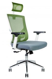 Кресло офисное Гарда SL белый пластик зеленая сетка серая сидушка