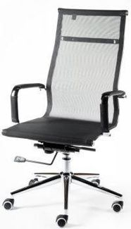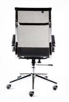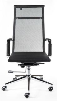 Кресло офисное/Хельмут/(black) сталь + хром/черная сетка Кресло для руководителя Хельмут является одним из ярчайших образцов современного дизайна. Если хотите сделать Ваш офис или рабочее место дома еще более стильным, респектабельным, то кресло Хельмут, пожалуй, оптимальный выбор. Его отличают высокопрочная, эластичная «дышащая» сетка, хромированные металлические подлокотники со съемными накладками из сетки и надежная крестовина из полированного алюминия. Наличие механизма качания с возможностью фиксации кресла в рабочем положении позволяет снять нагрузку с позвоночника, занять максимально удобную для вас позу как при работе, так и во время отдыха. Обычно аналоги данной модели комплектуются более дешевыми крестовинами. В нашей модели крестовина дизайнерская, хромированные лучи переменного сечения сужаются к концам. Это придает креслу изысканный оригинальный вид. Подлокотники защищены съемными сетчатыми чехлами на молниях. Это особенно удобно для тех, кто не любит соприкосновения руками с металлическими подлокотниками.