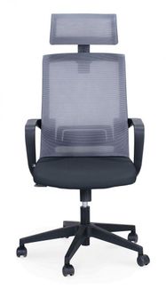 Кресло офисное/Интер/база нейлон/черный пластик/серая сетка/черная ткань Высокое качество исполнения. Регулируемый по высоте подголовник. Интегрируемый нерегулируемый поясничный упор. Разнообразные цветовые компоновки спинки (сетка) и сиденья (ткань)