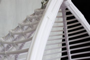 на стальной штанге с плетеной корзиной из искусственного ротанга. В корзине удобные подушки из влагостойкой ткани. Очень удобное место для отдыха и чтения ― свет проникает даже через стенки корзины! Максимальная нагрузка ― 150 кг.