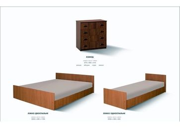 Ширина Х высота Х глубина:Комод 870 Х 880 Х 410 Кровать 2-сп 2030 Х 590 Х 1700 Кровать 1-сп 2030 Х 590 Х 850 None Есть доставка. Доставка: 70.0UAH