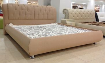 Кровать из ткани, с основание для матраса, без ящика для белья.
