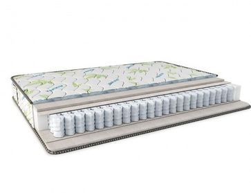 Высококачественный трикотажный чехол с объемной стежкой; Холкон (2см.); войлок белый; независимый блок пружин (256пр./кв.м.); войлок белый; холкон (2см.).