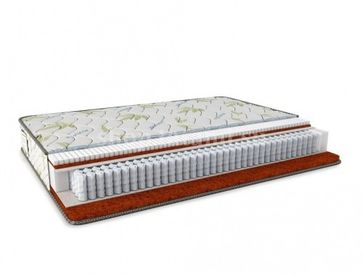 Высококачественный трикотажный чехол с объемной стежкой; Натуральный латекс (3см.); латексированная кокосовая койра (1см.); войлок белый; независимый блок пружин S1000 (510 пр./кв.м.); войлок белый; латексированная кокосовая койра (3см.)