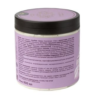 Состав: вода (Aqua); голубая глина (Cembrian Clay); реликтовая соль рапа (Rapan Salt); глицерин (Glycerin); экстракт гарцинии камбоджийской (Garcinia Cambogia Extract); кофеин (Caffeine); гелеобразователь из хлопка (Cellulose Gum), экстракт бурых морских водорослей (Carrageenan), L-карнитин (L-Carnitine); камедь бобов рожкового дерева (Ceratonia Siliqua Gum), сахароза (Sucrose); сорбитол (Sorbitol); эфирные масла: клементин, бергамот, апельсин, базилик (Clementine, Citrus Bergamia, Citrus Sinensis, Ocimum Basilicum Essential Oils); консервант Nipaguard SCE* (Sorbitan Caprylate, Propanediol, Benzoic Acid), натуральный краситель голубая спирулина (Blue Spirulina Powder). (*) Разрешены европейскими системами экосертификации для органической косметики. Способ применения: Нанести слоем в 1 мм на сухую кожу проблемных зон, обернуть пищевой пленкой, надеть сверху теплые штаны или обернуть махровым полотенцем. Оставить для воздействия на 30 – 40 минут, затем смыть