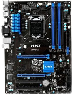 - Материнская плата MSI Z97 PC Mate RTL {LGA1150, Z97, 2xPCI-E, Dsub+DVI+HDMI, GbLAN, SATA, RAID, 4DDR-III, ATX} в каталоге Материнские платы в России;