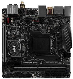- msi (ms-7a66z270i gaming pro carbon ac601-7a66-010,10801-7a66-001std z270i gaming pro carbon ac, z270,lga1151,2ddr4,1pci-ex16,1m.2,4sata3,2usb3.1 gen2(typea+c) по выгодной цене 9 710 р. руб.;