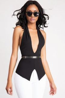 Стильная кофточка с пикантным вырезом декольте. Модель с полуоткрытой спинкой и застежками на шее. Ремень в комплект не входит! В наличии M 1 шт None Есть доставка.