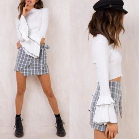 Для создания игривого образа идеально подойдет укороченный топ с длинным рукавом-клеш. Такая актуальная модель в этом сезоне будет притягивать взгляды! В наличии S 1 шт None Есть доставка.
