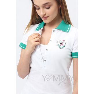 Y@mmyMammy Футболка-поло короткий рукав белая с зеленым воротником 224.1.24