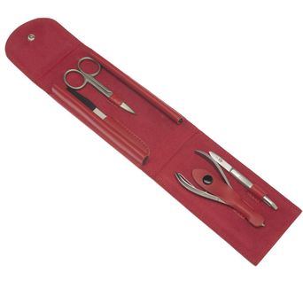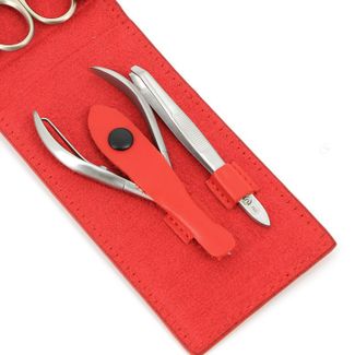 Маникюрный набор GD, 4 предметов. Инструменты: ножницы для ногтей, кусачки для кожи, пилка метал+пластик, пинцет наклонный; покрытие никель. Футляр: натуральная кожа, цвет красный None Возможен самовывоз. Есть доставка.