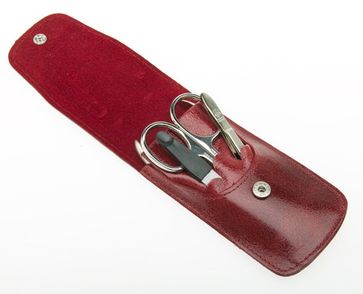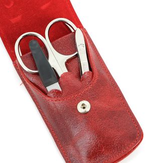 Маникюрный набор Dovo, 4 предмета. Инструменты : ножницы универсальные, кусачки для ногтей, пилка металлическая, пинцет наклонный. Футляр: натуральная кожа (вол), цвет красный. Размер 6 x 3 x 11,5 см None Возможен самовывоз.