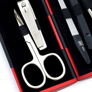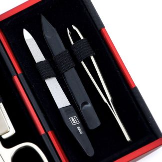 Маникюрный набор Yes, 5 предметов. Инструменты: ножницы для ногтей, книпсер, шабер пластик, пинцет наклонный, пилка металлическая. Футляр: металл, цвет красный/черный. Размер 11,5 x 2 x 6 см None Возможен самовывоз. Есть доставка.