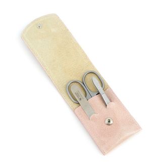 Маникюрный набор Dovo, 3 предметов. Инструменты: ножницы универсальные, пилка, пинцет наклонный; покрытие матовое. Футляр: натуральная кожа (вол), цвет розовый. Размер 5,5 x 2,5 x 10 см None Возможен самовывоз.