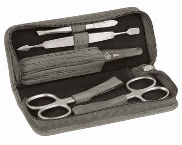 Маникюрный набор Erbe, 5 предметов. Футляр: натуральная кожа, цвет серое дерево. Размер 14 x 2,5 x 6 см None Возможен самовывоз.